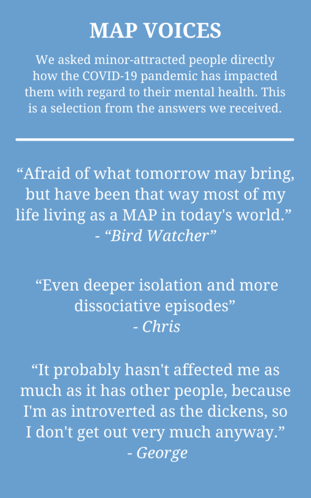 Leading researchers, institutions, and organizations work to enhance mental health, prevent suicide, and protect people from institutional or societal abuse and hatred. However, they all tacitly exclude adolescents or adults attracted to children from these missions, sending a clear message that these people are not considered completely human. Imagine a 13- or 14-year old boy who realizes he’s attracted to prepubescent children, who knows he’s a “pedophile” (not unusual as Dr. Seto noted). Imagine his thoughts when he sees the following, published recently by a researcher: “Horror and disgust shouldn’t be our only response to pedophilia,” implying that horror and disgust for this boy are acceptable, even desirable, even though they are not enough.
